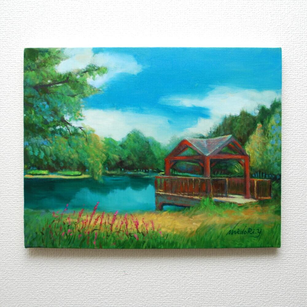 東屋とミソハギ(彩の森入間公園)は、美しい自然風景を描いた油絵です。入間公園の四季折々の風景を描いたこの作品は、細部までこだわったリアリティと豊かな色彩が特徴です。自然の美しさと静寂を感じさせるこの作品は、部屋のインテリアに華やかさと穏やかさをもたらしてくれることでしょう。