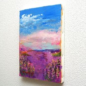 晴れやかな空の美しい青と、色とりどりに広がるルピナスが美しい心の風景画です。ルピナスは春先から初夏に咲き、花言葉は「想像力」「空想」「貧欲」など。青空はすがすがしく気持ちの良いものですが、この素晴らしい天気のもとにピンクや紫のグラデーションを作る花々があったらどんなに素敵でしょうか。